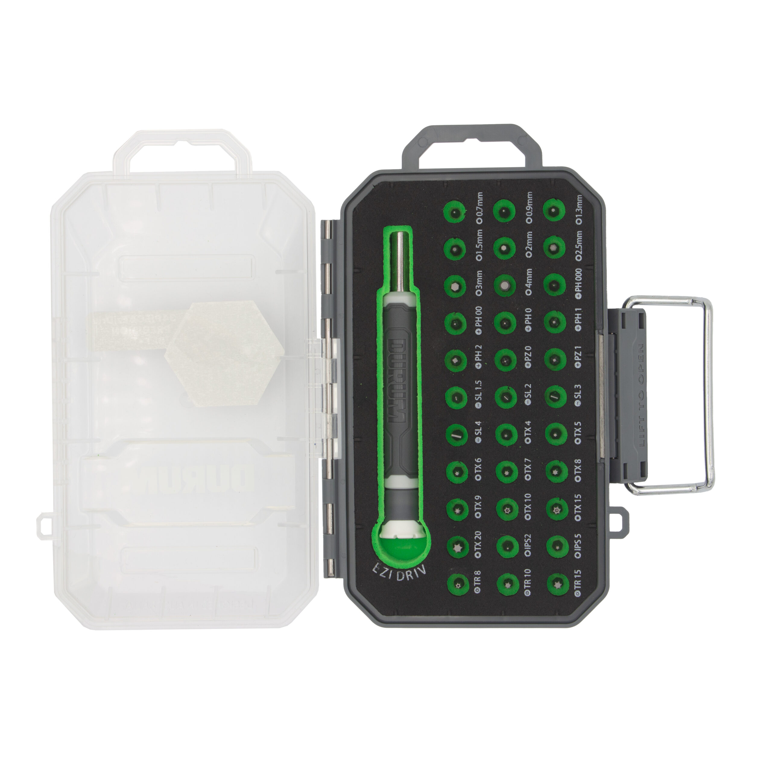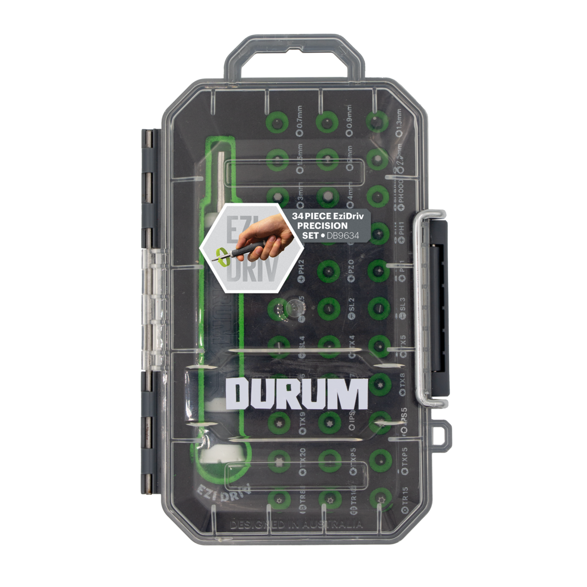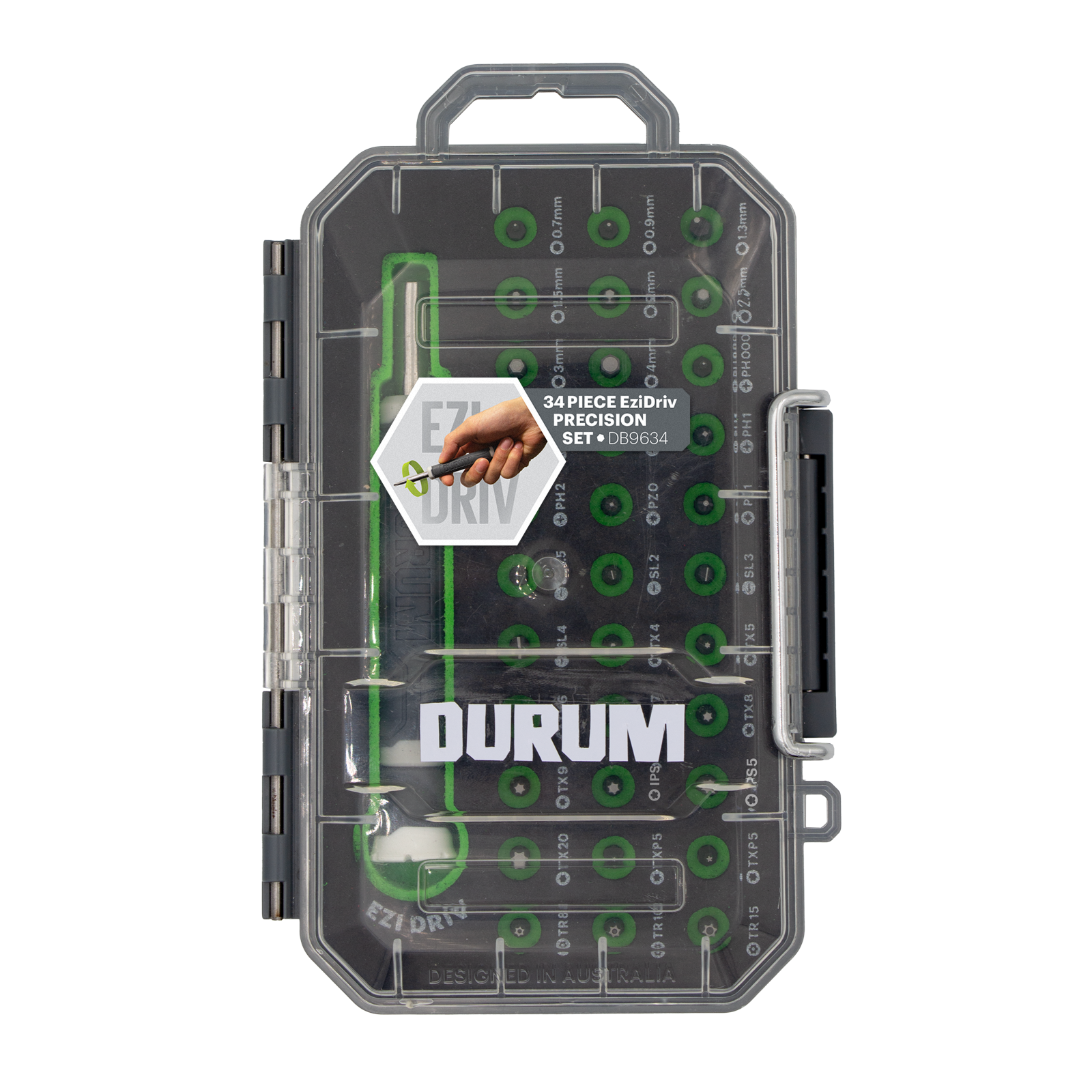 The Durum EziDriv Precision Multidriver Set includes the unique Durum Precision EziDriv Magnetic Multidriver as well as 33 precision screwdriver bits, for precision applications including iPhones.